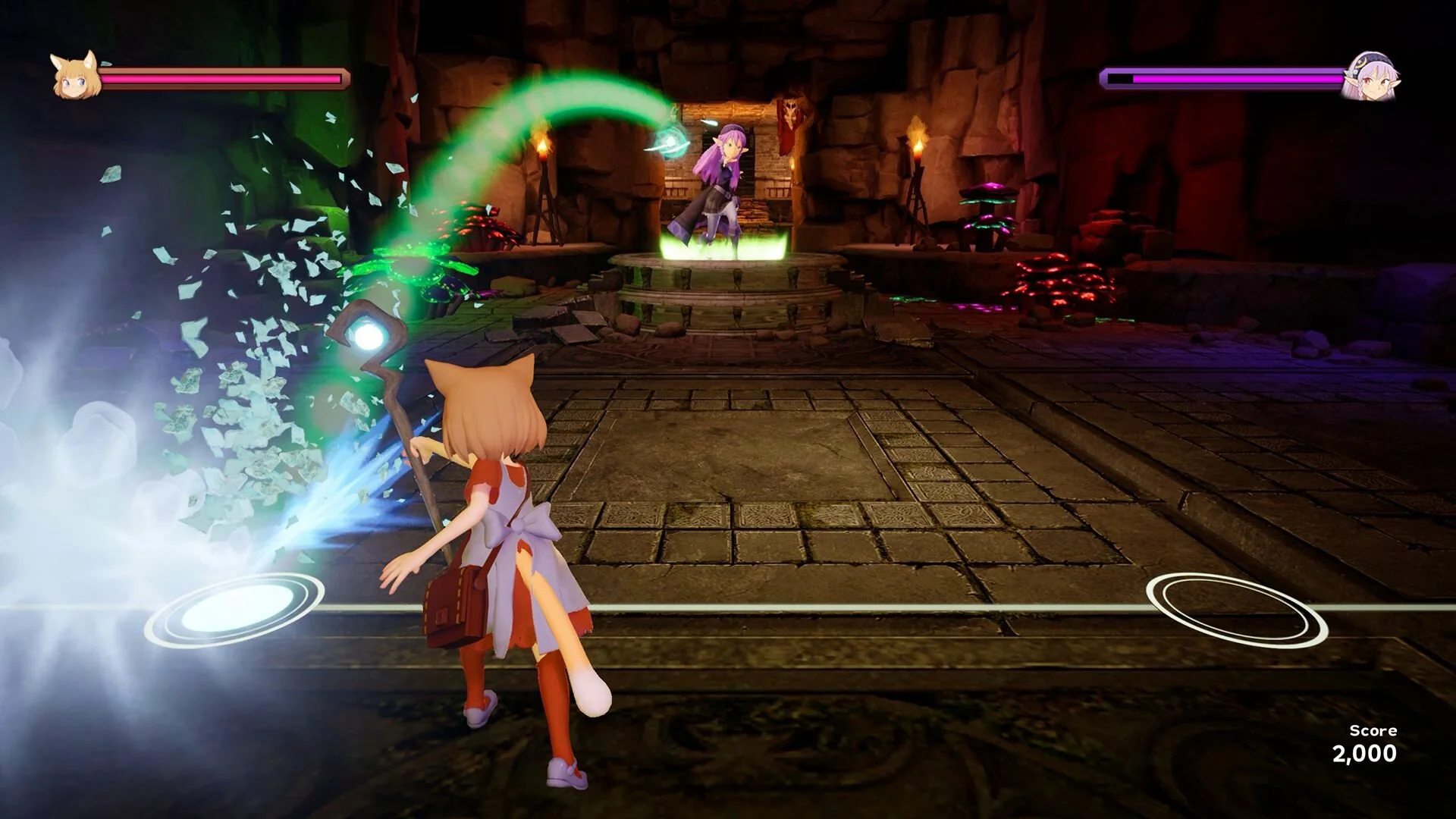 The rhythm sections of the game were done well, but have a bit of a learning curve to understand when to hit the button. It’s a very simple system. You slide either left or right and hold the A button or left click when the “rythmo orbs” hit the indicator. The only variation on this is holding down those buttons for longer stretches or dodging different projectiles being thrown out by the boss.